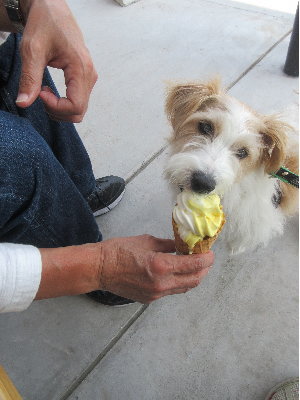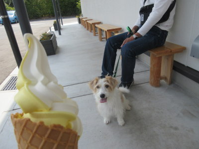 ご飯を食べた後は、お買い物をして、アポロと一緒にソフトクリームを食べた。
