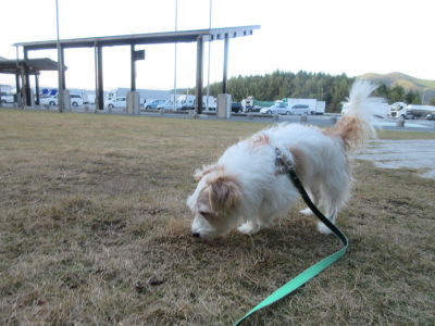 14時10分頃、広島の「七塚原SA」に到着。ここのドッグランは、なぜかアポロのお気に入り。ちょっと長めに休憩。