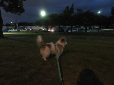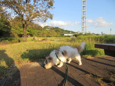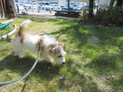 旦那のトイレタイムに近所でちょこっとアポロお散歩。