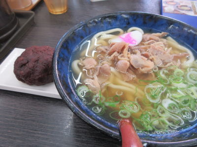私はかしわうどんとぼた餅