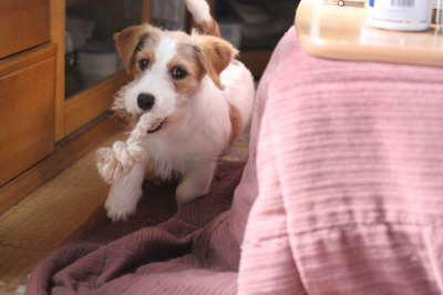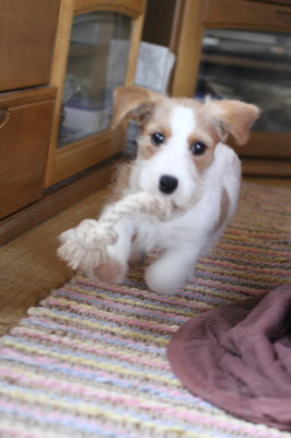![]() ![]() 2015.04.24(金) 午前中はいつもと同じような感じで過ごし、10時頃にはお外へ。比較的いい子に出来た。お昼寝もして、夕方に少し出した後、私がご飯の準備があるので再びケージに 入れたら、大暴れ。トイレシートは網を置いてない場所をビリビリ、うん@して食べる、水はひっくり返す・・・。無視した方がいいと言われても・・・って感じ。食べるのも恐いし。 いつになったら聞き分けが良くなるのだろう・・・。(泣) その上、夜になって大人しくカミカミしてると思ったら、敷物のピンを抜いていた。あー恐ろしや。(>_<) 夕方からうん@が ちょっと柔らかくなって回数が増えてきた。 |