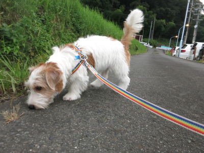 ![]() 2015.08.17(月) 今日は午前中にジジを病院に連れて行こうと思っていたら、ジジから電話がかかって来て、今のところなんともないから様子を見ると・・・。買い物を届けに行ったついでに、顔を見に 行くと、今朝は下痢もないらしく、顔色も別に悪い感じではなかった。午後から雷雨。結構降ったから夕方のお散歩をどうしようか迷ったけど、服を着せて出発。地面はだいぶ乾いて きていたので問題はなかったけど、落下物が多くて、回避するのが大変。2度程パクリ・・・とやられた。(-_-;) |