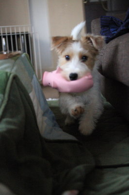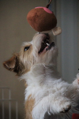![]() 2016.02.06(土) 見向きもしなくなっていたデンタルダンベル。また復活してカミカミ。買い置きしてあった新しいのをあげると、咥えて走り回っていた。ソファのところで落として下に転がってしまった。 転がる音がしたのでフローリングの部分まで転がったなぁ・・・と思っていたけど、アポロが取って欲しそうにしたら取ってあげようと思っていたら、最初は前から覗いてたけど、そのうち ソファの横に回り、しっかり咥えて帰って来た。う〜ん、やはり頭がいい! JRTは人間には頼らず自分で解決する犬種なのだった。 |