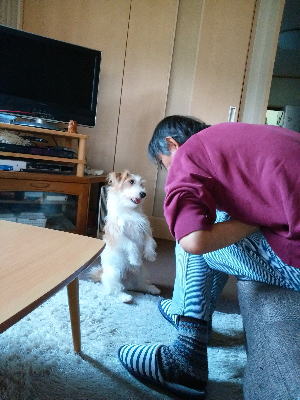 ![]() 2016.10.19(水) 訪問看護が14時半頃との連絡があったので、10時頃会社へ連れて行った。その間に私は買い物へ。11時半頃に迎えに行ってしばらく待ってい たけど、仕事が片付いていないようなので、買って来ていたご飯を取りに帰って会社に持って行った。ご飯が一人分しかなかったのでジジにはミニのカ ツ丼を買って来てたので丁度良かった。(^_^;) 14時頃に迎えに行こうかと思ったら、少し前に電話がかかって来たので迎えに行った。家にいられる時 間があったので私もちょっと仕事が片付いた。14時半過ぎに訪問看護の看護師さんがやって来た。今のジジは特に体調は問題ないので、相談する と言えば便の話。(^_^;) 座薬を入れて貰って、残り時間で手足を動かずリハビリを少しやって貰った。 #「アポロくん」「は〜い」の特訓中! |