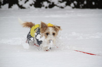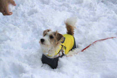 ![]() 2018.01.30(火) 朝起きて外を見ると、思ったより積もっていなかった。今日はジジのデイサービスの日。8時35分のお迎え。朝ご飯を食べたら、お迎えの時間に間 に合うようにまず雪かき。10時過ぎに買い物へ。13時45分頃ジジが帰宅したので、会社に送って行った。そしてアポロのお散歩。ドロドロ覚悟で 久々に通常のお散歩。いいお天気になったので、道も乾いている所が多かった。アポロは基本、雪のない所を歩くみたい。でも、帰って来たら一目 散に駐車場の方へ行って、自分から進んで雪の中に入って行った。でも、リードは短いし、私の靴は雪の中には入れないので、一旦家に帰り仕度 をして再び駐車場へ。結構ハイテンションで走り回った。今回はパウダースノーだったので、アポロは雪玉怪獣になった。(>_<) 服の袖の中にも雪玉 が出来てるし。(苦笑) |