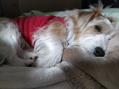 ![]() 2023.04.15(土) 今日は10時半頃ジジを会社に連れて行って、買い物へ。12時前にジジを連れて帰って来た。雨なので、アポロのお散 歩はお休み。 |