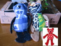 管理人は、実は自他共に認める新し物好き、限定物好き。(^_^;) ・・・って言ってもかわいいもんですが。今日、ジャ○コにお買い物に行き、買い物を済ませレジへと向かうと、レジの横の方にワゴンが並んでいた。あ。また「365日のバースディテディ」だ。第1回目・・・。あれはいつだっただろうか。発売されるという噂を聞き、HPで自分のテディの柄を覚え、発売当日一目散に買いに行った。必死に探して喜び勇んで買って帰って箱をあけると、胴体の柄が同じで手足の色の違う、5月24日生まれのハリー君だった。めちゃショック。次の日にまた探しまくり、無事3月31日生まれのヒトミちゃんを手に入れた(画像左)。第2回目が発売された時、どーせ買ってもなぁ・・・と横目で通り過ぎ、数日後やっぱりと思って探したけど、残り少なく見つけ出す事が出来なかった。そして、第3回目なのだ。どーしよーかな・・・と近づくと、今回はテディベア誕生100周年のスペシャルバージョンらしい。、ワゴンの上で買ってくれとばかりにすぐに見つかった(画像右)。悪い癖でつい買い物カゴに入れてしまった。こーなると2回目が悔やまれるぅ。なので検索して明治製菓のHPから勝手に連れて来てしまった。(^_^;) 第3回目は今日発売だったのだ。私を呼んでたのねん・・・。 | ||||