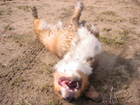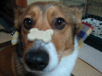 今日は朝からしぐれ模様・・・。実家に連れて行ってもお散歩も出来ないので、アトム久々のお留守番。出かける前に雨があがった合間にうん@散歩を済ませる事が出来たので、うん@まみれだけは免れました。(^_^;) やれやれ。でもしっかりシーはしてありましたが・・・。帰っておやつをあげるのを兼ねて、いつもの芸をフルコース。おやつがなかなか貰えないと、最近覚えた「ゴロン」をこれでどうだっ!とやるアトム。誰も「ゴロン」なんて指示してないのに。(笑) 何個かおやつをあげた後、念願の鼻パクを成功させるべく挑戦。「マテ!」で鼻先におやつを近づけると、いつも顔をそむけるアトム。今日は「マテ!」の脅しをかけながらマズルをむんずと掴み、無理やり乗せてみました。なんとか3回程乗せられたけど、ど〜もパクッが難しいみたい。早く食べたくてあせるから、何処へ飛んでいくかわからない〜〜〜。(笑) でも念願の「鼻パク」の成功も近いかも?(^_^;) |