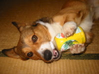 私の靴下にも穴が開いているのを発見したので、ヨシ!と思って、片方づつを並べ、もう片方を手に持ち、アトムに「これ、お父さんの靴下」と言って匂いを嗅がせ「お父さん靴下持って来て!」と言うと、おぉ。持って来た!!スゴイやん!!と思って、次は私の靴下でやってみたら、また旦那の靴下を持って来た。(^_^;) さっきのは単なる偶然か?どうしたら教えられるのだろう? 他にも、お菓子をこっそり片方の手に持ち「どっち?」とアトムに嗅がせ、鼻先でツンツンしても100%当たる訳ではない。こういうのもどうやったら教えられるのだろう・・・?やっぱ地道な努力? ← 空のペットボトルをあげると、夢中でフタはずしに挑戦のアトム。 |