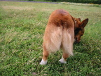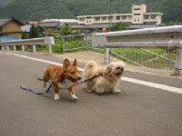 今日は共同購入の日。最近、大人になってきたので、いっちょフリーでお留守番させてみる事にした。玄関の方に向かうと、必ずストーカーしてくるので、柵の所でクッキーを3枚あげて外へ。商品の仕分けした後、井戸端会議してたりして、結局1時間弱のお留守番。帰ってみると廊下でフセしてた。部屋の中も異常なし。おぉ出来るじゃん♪ 明日は台風でお散歩も出来ないだろうから、今日は河川敷へ。ひとしきりサッカーボールで遊んだ後、足を飛ぶジャンプを教えようと思って、地面に座って片足を伸ばした。クッキーを片手にジャンプをさせようとするけど、あまり興味がないらしい。以前から家の中でも何度か挑戦してるんだけど、なんか好きじゃないみたい。アジの練習にもなかなか行けそうにないし、このジャンプ!させたいんだけどなぁ〜〜〜。 |