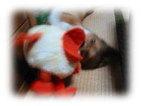 やはり、お疲れの様子のアトム。母親がやってきても、ご挨拶だけで遊んで遊んで攻撃もなし。(^_^;) まぁ2日続けて走り回ったんだからね〜。私もおでレポ作りで終わってしまった。(笑) まず第一弾はこちら〜♪。 |