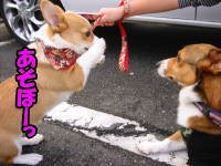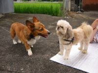 いよいよ冬が近づいて来たぁー。今日は11月中旬の冬型の天気。太平洋側が晴れで、日本海側が時雨れる・・・ってやつ。時々降る雨・・・これがもう少し寒くなると雪なんだよなぁ〜〜〜。少し前に、アトムのHPを発見して下さってメールを頂いてた、コーギーのももちゃんとももママさん。実は我が家から車で30〜40分くらいの所に住んでいらっしゃって、なんと獣医さんが一緒! お散歩デビューも済んで、今日はももちゃんのフィラリアの薬を貰いにこちらの病院へ来るとの連絡を頂いて、会って来ました!! 待ち合わせはスーパーの駐車場。(^^ゞ まだチビコギのももちゃん、初めまして〜♪ アトムは女の子にはやさしいので、大丈夫だわ〜といきなりのご対面。ももちゃん、元気いっぱいでアトムに遊んで遊んで攻撃。バトルを始めそうな勢い。アトムたじたじ〜。ぷぷ。でも、ももちゃんは一緒に狂犬病の注射を済ませたばかり、安静にしなくちゃね。しばしのご対面でバイバイ。また機会があったら一緒に遊びましょうね。ももママさん、連絡ありがとうございました。わ〜い。但馬で初のコギ友達出来たぁ〜。こんなうれしい出会いもあるのよね〜。HPやってて良かったわん。![]() ![]() ![]() |