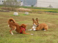 2年前の今日、アトムが我が家の一員になった♪ そんな記念すべき日。でも、今年はな〜んにも考えてなかったりして。(^^ゞ 旦那の帰りが少し遅い予定だしね。今日はお天気もいいし、夜久野にお散歩に行った。途中、いつもと違う山の道を走り、深まりゆく秋を感じつつ・・・。芝生の広場に行って見ると、わんこを2匹連れたおじいさんがいた。杖をついてるみたいだし、遠目にシーしてる様子がオスっぽいし、何かあったらいけないので、まずは前から気になってた森の方へ。そこは野鳥観察が出来たり、アスレチックの広場がある。そちらの道はウッドチップが敷いてあったりして、少し草ぼうぼうだけどいい感じ。しばしお散歩。少ししてから広場に戻ってみると、もう誰もいなかったのでまたまたフリとボールで遊ぶ。後半、アトムがサッカーボールをヘディングしながら走って行って、溝にボールを落としてしまった。拾ってあげて、ポンと投げるとアトムが口でダイレクトキャッチ!おぉ・・・と思っていると、ボールを離そうとしているのに離れないみたい。どうやら歯がささってしまったみたいで、口を大きく開けたまま。大慌ててボールを取ってあげた。びっくりしたけど、ちょっと笑えた。(^^ゞ 帰りに、野菜を物色。大根をお買い上げ〜♪ 小ぶりだったけど我が家には充分な大きさのものが、葉っぱも付いて60円なり〜。お昼にお買い物に行った時に白菜を買ってしまったけど、ここで買えば良かった〜。今日はお天気良くていっぱい遊べて良かったね。また来年の今日を元気で迎えようねっ。一緒にいっぱい楽しむじょ〜!ね、アトム♪![]() ![]() ![]() 我が家にやって来た日 1年後 そして今日 |