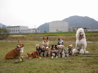 今日は、お友達のTOKIKOさん率いるFancyファミリーが、こちら方面に紅葉を見に来ると言うので、是非、いつもの河川敷で一緒に遊んで貰おうとお誘いした。午後からのお天気が心配だったけど、無事雨も降らずみんなで河川敷へ。やっぱり今日も貸切〜♪ 早速、美雨ちゃんとアトムは仲良く走る!走る! おチビちゃん達もボール遊びをしたり元気だわ〜♪ すでにひと遊びしてきた後なのにね〜。(笑) 2時間程の間に、3度も列車が通って、その都度アトムは電車でGO!を披露する事に。(^^ゞ あんたも好きねぇ〜。Fancyファミリーとはこれで3度目。みんないい子ばかり。初めて会った母親も感心することしきり。しかし、相変わらずチビちゃん達の区別がつかなぃーーー。でもみんなご挨拶に来てくれて、かわいいかった♪ 区別がつくように頑張るぞぉ〜〜〜。(笑) さぁそろそろ帰ろうか・・・って頃に雨がポツポツ。やっぱり晴れ女TOKIKOさんだわ〜。今日はありがとうございました。お土産まで頂いちゃって。m(_