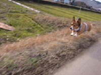 昨日、雨が降ったので、今日はお買い物のついでにジャ○コの横でお散歩。なんとなく嫌な予感はしていたのだけど、予感は的中、途中から田んぼの中を爆走してくれました。(T_T) でも、もう何度もやられてると、アトムを怒りつつ心の中では「面白い写真が撮れないものか」と思ってる自分が恐い。(笑) ←この田んぼと田んぼの境も、カッコよく飛び越えてくれるといい写真になるのに、あんな細いところに足を4本乗せてるこのかっこはなんだかなぁ〜。 夜、プロジェクトXで盲導犬の話をやっていた。わんこと言う生き物は、ホントに愛しい生き物だ。 |