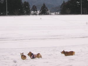 お友達と、一緒に雪遊びをしてお鍋がしたいなぁ〜と言っていた。週末に合わせて雪が降って、みんなの都合がいい日なんて、そう上手くいかない。今回の寒波がちょうど週末にかかるので、遊びに来てくれる事になった。いつもは雪なんていらな〜いと思っているけど、今回限りは雪よ降れ〜〜!だったのに、願いも虚しくこの辺りはほとんど雪が降らない。(T_T) で、一昨日下見に行った公園で、少しだけでも雪遊びが出来ればいいか・・・と、決行。本日の参加者は、QOO&UOO家とパズー家と伽太郎家とミニー家と我が家。少し雪で遊べれば・・・と言っていたのに、お鍋もそこでやったりして、気がつくと4時過ぎ。(^_^;) 慌てて最後に一遊び。(笑) そこから、少々の渋滞があったりして、6時過ぎに和田山解散となりました。やっぱりお友達とわんこと一緒に、ワイワイやるのは楽しい〜〜。念願のソリも滑ったし。むふ。(^.^) 皆さん、今日は遠い所ありがとうございました♪ また一緒に遊んで下さいね!![]() |