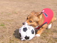 今日はバレンタインデー♪ 今年はなぜかチョコがやたら目について、自分で食べるのをメインに考えてご購入〜♪ アトムにもネットでチョコ風のバレンタインのケーキをお願いした。久々にバレンタインがイベントっぽくって満足だわ〜。(笑) 今日は午後からお天気が崩れるらしいので、お昼に河川敷へ。今日はKissデジを持って行った。風が強いので、ババが車で待つ事になったので、首からカメラを提げ、片手にアトムのリード、片手にボールとか入ったカバン・・・。なんだか凄いカッコだし。(笑) 首に提げたままサッカーボールを蹴るのも、カメラに気を使うよなぁ・・・。(^_^;) ![]() |