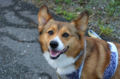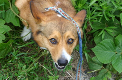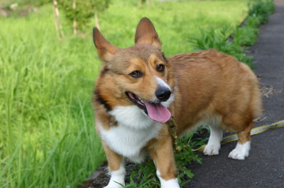 | 7月19日(月) 3連休も今日で終わり。それにしても暑い・・・。今朝は、旦那が早く出勤するので、いつもより早く起きた。当然、アトムの散歩もいつもより早い。6時頃はまだ暑くなくて、お散歩もゆっくり。アトムの朝の散歩は、こっちの起きる時間に合わせるのでバラバラ。でも、「散歩行くよ〜」と言わなくても、お散歩バックを持つと、すかさず玄関までついてきて、カラーとリードをつけてもらうのを待って、さぁお散歩へ。こっちの行動はすべて把握済みのアトムなのだ。 |
