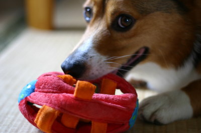 | 7月22日(木) 少し前にアトムの為に買ったおもちゃ→。「一人遊びをさせてもたいくつしない」と言うフレコミ。中に鈴の入った三角ボールが入っていて、それをひっぱり出すと言うもので、その三角ボールは内側と繋がってるので無くす心配もない・・・。アトムにあげると教えてもいないのに、あっと言う間に中のそのボールをひっぱり出した。ぬいぐるみとかでも、中綿を出したら、そのぬいぐるみを裏返してしまうと言う趣味?を持ったアトム。我が家では「職人」と呼んでいるのだけど、職人の手にかかるとこんなものはたいくつしのぎにはならないらしい。前にも、BOXの中からボールを出すように仕向け、本能を刺激すると言うおもちゃも買ったのだけど、それもあっと言う間に取り出してしまって全然面白くなさそうだった。それにしても、私って教育ママゴン(この言い回しも古いけど(笑))の素質があるかも〜。頭を使わせるようなおもちゃは機会があるとつい買ってしまう。(^_^;) 子供はいないけど、もし子供がいたら、早くから教育教材とか買い揃えるタイプかもしれない。(爆) |
