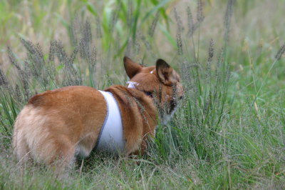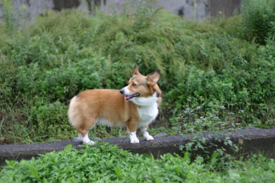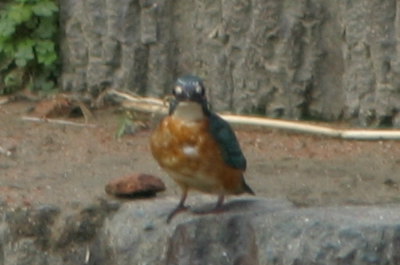 | 10月4日(月) 昨日雨降りだったけど、少しだけ河川敷に連れて行った。そこで、なんと「カワセミ」を見たのだ。綺麗な青い鳥で、前から一度生で見てみたかったのだけど、まさかこの辺りにいるとは思っていなかったので、目の前に青い鳥がいるのを見た時はびっくりだった。めちゃくちゃ綺麗だった〜。急いでカメラを構えたけど、シャッターを押す直前に飛んでしまって、少し遠くに行ってしまった。それでも撮ったのが→。ちょっとピントが合ってないのと、背中が写ってないのが残念・・・。この1枚で川の向こうへ飛んで行ってしまった。でも、思いがけない出来事で、とってもうれしくて幸せ〜♪な気分になった。またいつか見られるかなぁ〜。アトムはと言えば、相変わらずこんな事やってます。(爆) |
