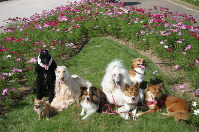 | 10月12日(火) 久々に朝からいいお天気になった♪ 今日は、お友達のTOKIKOさんに誘ってもらって、「兵庫県立フラワーセンター」にコスモスを見に行った。たまには気分転換に!とババも一緒に。初めましてのくれあさんちともご一緒でした。いいお天気で暑いくらいだったけど、園内を写真を撮りながらぐる〜っと一周。最後に広場で少し遊んだ。(写真が変わるよ) 我が家は、ババの帰る時間の事もあって、一足お先に失礼した。帰って久々にアトムは爆睡でした。みんなと遊んでもらって良かったね。TOKIKOさん、くれあさん、今日はありがとうございました。またご一緒させて下さいね。 |
