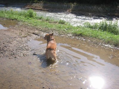 | 11月5日(金) 今日もいいお天気♪ 先日、種まきした葉っぱ類、順調に芽が出てきてる。でも、いつになったら食べられるのじゃー。お昼にお買い物に行くついでにアトムを河川敷へ連れて行った。しばらくして列車がやってきたので、久々の電車でGO!(^_^;) 砂煙を上げながら走るアトムです→。(笑) 今日は結構長い距離を走っていった。なかなか戻って来ないので、名前を呼びながら迎えに行くとひょっこり姿を現した。見ると、お腹が濡れている。どうやらすでにクールダウンした後らしい。もう濡れてしまったし、本来の川の方が水がまだ綺麗なので、川に下りるのを止めなかったらこの通り(画像が変わるよ)。(笑) ま、今日はポカポカ陽気だもんね〜。 |