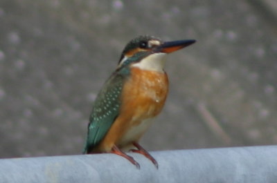 | 11月14日(日) 新聞の天気予報をふと見ると、明日は雨? なので、アトムを連れて河川敷へ。行ってみると、駐車場に車が何台も止まっている。あちゃ〜っと思いつつも行ってみると、丁度片付けて帰る所だった。良かったね〜とくるっとお散歩。するとまたしても青い鳥がす〜っと飛んで行った。きゃ〜、またカワセミがいる〜。アトムほったらかしでカワセミを追跡。(笑) ババにもほらほらと無理やり見せる。(^^ゞ 今日は、結構大きく撮れたかな♪ リサイズなしでトリミングしたもの→ カーソルでもう1枚。イマイチ色が鮮やかじゃないなぁ・・・とネットで調べると、どうやらメスの様。オスはもう少し色鮮やかなんだよね。でも、この辺りを縄張りにしてるのは間違いない。鳥をポツポツ撮ってるけど、カワセミ撮るのにはまりそ〜だわ。アトムはと言うと、今日もやっぱり。今日はそんなに暑いとは思わないんだけど。(^_^;) |