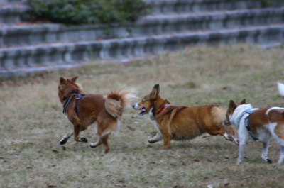 | 11月17日(水) 今日はお友達のTOKIKOさんに誘って貰って、波賀町のさざなみ公園へ遊びに行く事にした。お昼過ぎに「やまめ茶屋」で待ち合わせして、まずはやまめ定食で腹ごしらえ。やまめのお刺身を初めて食べた。こりこりしてて美味しかった♪ その後、公園へ行って、わんこ達を遊ばせます。アトムはいつも美雨ちゃんに遊んでもらうんだけど、今日も美雨ちゃんをぴったりマーク。(笑) 楽しそうに走ってました。(画像が変わるよん) この公園、すでに日がかげってて、寒くなってきたので、1時間ちょっとで解散。帰るときは、最近のアトムお決まりの乗車拒否。(^_^;) おまけに、TOKIKOさんの車に一緒に乗り込むところだった。(笑) まだまだ遊び足りないのかと思いきや、帰ってしばらくすると爆睡〜。楽しくてもっともっと遊びたかったのか。また遊んでもらおうね。TOKIKOさん、今日はありがとうございました。ババにもいい気分転換になったかな。 |