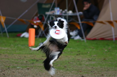 | 12月11日(土) 今日と明日は、柏原町にある丹波年輪の里でNDAのディスクドックの大会がある。昔は、ここの大会に出るのを夢見てたんだけどなぁ〜。(笑) 最近、大会を見にも行ってないし、雨ももちそうなので久々に見に行ってみる事にした。お友達のシェリーちゃんも出るって言ってたような気がするし。もちろん、ババを連れて。(^_^;) お昼前に到着すると、ちょうどドギーズ(コーギーなどのクラス)の終盤だった。シェリーちゃんはすでに終わっていた。シェリーちゃんのママ、yahhoさんにお会いしてご挨拶〜。久々にお会いした。シェリーちゃんは8歳だけど、バリバリのディスクドック。めちゃ小柄でアトムの半分もないの〜。ご挨拶・・・とチャレンジしたけど、わんこが嫌いなのでアトムは一喝。(笑) その後、ベンチでお昼ご飯を食べて、知り合いのカメラマンの坂本さんにもご挨拶して・・・。今日のもう一つの目的は、写真を撮る事。ホントはドギーズの写真が撮りたかったんだけど、2ラウンドまでまだまだ時間がある。ババとアトムを車で待たせて、もう一度会場に戻った。yahhoさんに教えてもらって、NDAのディスクを購入〜♪一度これも使ってみたかったのよ。yahhoさんありがと〜。(謎) その後、少し写真を撮った。知らないわんこばかりだけど、楽しい〜♪ タイミングとかなかなか難しいのだけど、夢中になれる。CFがFULLになったので、時計を見ると1時間経過してた。(^_^;) ん〜、待ってる方はたいくつだろうからそろそろ引き上げようかと車に戻り、少しアトムをお散歩させようと会場に戻ると、もうすぐドギーズの2ラウンドとのアナウンスが。急いで車に戻ってアトムはもう一度お留守番させて、ダッシュで会場へ。さぁ〜写真撮るぞ!と気合を入れて、パシャパシャ。さてシェリーちゃんの番。すると、すぐにCFがFULLに。ぎゃ〜〜っ。入れ替えたCFが前に撮った画像が残ってたんだぁ〜〜。肝心のシェリーちゃんの写真が少ししか撮れなかった。(泣) どんくさ過ぎ・・・。その後は、昔の画像を何枚か消しては撮り、消しては撮りで、ドギーズの終了と共に会場を後にして、買い物をして家へ。久々のディスクの大会の見学、なかなか楽しかった。 #シェリーちゃんと、ボーダーの??ちゃん |
