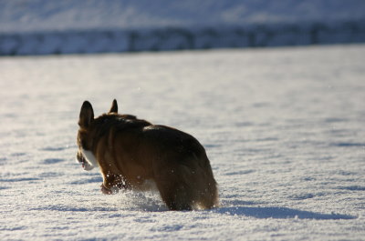 今日はお昼過ぎまで雪が降ったり止んだり・・・。とは言っても、積もる程ではなく、そのうち道は溶けてしまった。こうなると雨の日と同じで、お腹がドロドロになるのよねー。(>_<) 朝のトイレ散歩の時に、薄っすら雪が積もってたもんだから、またしてもアトムは「お願〜い」を何度も。(笑) 甘々の飼い主は、仕方ないなぁ・・・と外に連れ出す。やっぱり雪が好きみたいで、雪の残った草の上を走り回る。時折、スイッチが入って猪の如く爆走〜。このスイッチの入るタイミングは未だに謎だ。 |