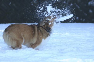 今朝は結構冷え込んだみたいで、新たに積もった雪はサラサラの粉雪だった。実家からのお呼びもなかったので、今日もまったり。ま、まったりしたのは私だけで、旦那はお仕事だけどさ。今日も雪遊び三昧の一日でした。隣の駐車場は格好の遊び場所なので、歩きのお散歩なしでも走り回ってるので大丈夫か? ここんとこ、なぜかフリスビーをやる気マンマンのアトム。雪に足を取られるので走りにくそうだけど、楽しそうに走てった。普段、雪が身体に付く事はほとんどないのだけど、今日の雪は少しだけお腹のふわふわの毛にちっちゃな雪球が出来てたわ〜。(笑) |
