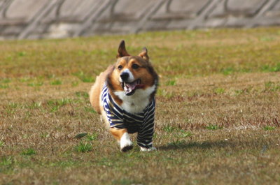 今日も時折雪が降る寒〜い一日。お昼ご飯を食べてから河川敷へ行く事にした。アトムはいつも車の後部座席のバリケンの中にいるのだけど、結構外を見ているらしく、知ってる場所に近づくと鼻を鳴らす。それが年を重ねる毎に酷くなってるような気が・・・。もう遊びたくて我慢が出来ないって感じで、バリの中で武者震いでもしてそう。(笑) 今日なんか、まだ河川敷も見えてないのに、後ろでピーピー。駐車場でも降ろすまでピーピー。河川敷はやっぱりべちゃべちゃだったけど、少しサッカー。耳が痛いほど寒かった〜。ドロドロになるからと久々にこの服着せたけど、袖が足にひっかかりそうで危ない。やっぱり袖のない服の方がいいな・・・。 |