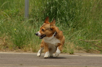 | 5月31日(火) 今日は久々に河川敷へ。2日来なかっただけなのに、なぜか久々の気分。JRの高架の工事も終了したみたいで、足場も撤去してあったし、芝もまた綺麗に刈られていていい感じ〜。午前中のお天気はなんかイマイチだったけど、河川敷に行った頃には日射しも出てきた。今日もフリを3投ほど。1投目はあまりに低過ぎて明らかに取れない感じだったのだけど、残り2投はナント!ジャンピングキャッチ! 完全に飛んでいた。アトムは今まで、フリのキャッチではほとんどジャンプしなかった。今日はなぜか絶好調〜。たぶん、今日のスローの高さとか、フリがアトムの視界に入りながら追い抜くタイミングとかが、やる気を出させる感じだったのだろう・・・。なる程これか・・・と思うのだけど、明日同じ感じに投げられる訳ではないので、そう上手くいくものではないな。(^^ゞ #電車でGO!のマジ走りモード。終わればもちろん、これだよねー。(笑) |