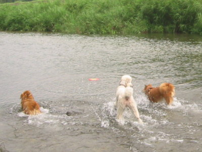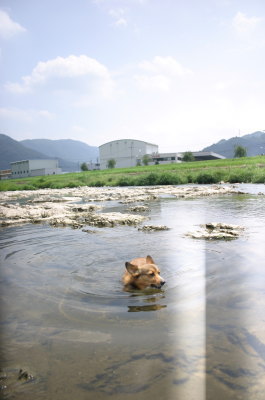 今日は宿直明けのお休み。宿直は、寝てるんだけど、やっぱり熟睡出来ないらしい。ので、本日もだらだらDAY。(>_<) お昼過ぎにパスタを食べに行って、夕方から「シルク温泉」へ。もちろんお風呂の前にはアトムのお散歩。今日も川遊び〜♪ 川ではレトリーブが大好きなアトム。流れが速い場所でも躊躇する事なく取りに行く。案外流されるのが面白かったりしてね。 |