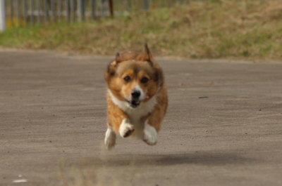 | 10月30日(日) 昨日一日行かなかっただけなのに、河川敷の駐車場に着くと鼻ピーピー。うれしくて我慢が出来ないみたい〜。ピーピーだけならまだしも、バリの中で回ってるのでついつい怒ってしまうのでした〜。「危ないからやめなさい!!」 |