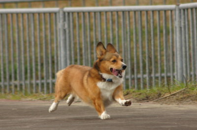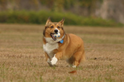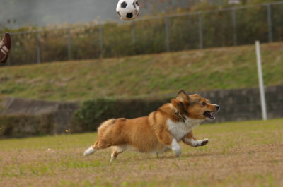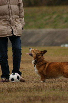 #寒い日の遊び。マテをさせて、少し離れて「GO〜!」でダッシュ。すぐにアトムに回り込まれて捕獲?されます。(笑) 一緒に走るのでポカポカに♪ |