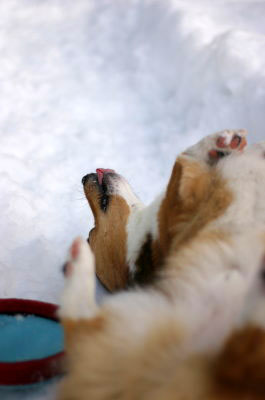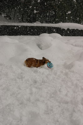 またまた雪の朝。こんなに続けて降られると一息つく暇もない。我が家で喜んでるのはアトムだけ〜。毎朝、お散歩に行く気マンマンで起きてくる。警報が出てるので、学校は休校だし、雪は止む事なくじゃんじゃん降ってる。午前中、雪の降る中雪かきをしたのに、また同じくらい降った〜。(>_<) 夕方に2度目の雪かきをしたけど、まだ降ってるのでそこそこでやめて、アトムと雪遊び&お散歩。そのうち頭が痛くなってきてしまった。う゛。風邪引いたって事はないよね・・・。 |