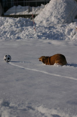 今日も時折り雪が舞う寒〜い一日。明日も雪降るらしいよ〜。しかし、この寒さは異常だ・・・。今日来た電気代の請求を見てびっくり。過去最高かもしれないってくらいの額。(@_@;) 灯油も高いし、我が家の家計はどうなるのだ。恐ろしやー。近くの駐車場の雪がまだまだ残っているので、今日も雪遊び。寒さ知らずはアトムだけ。今日もハイテンショーン。(苦笑) |