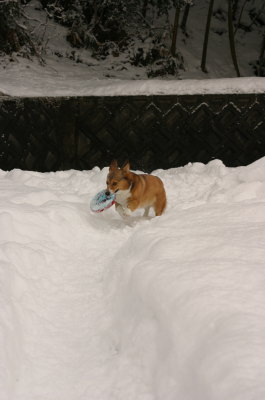 今日も飽きもせずアトムは雪遊び。夕方にも遊んでると、近所の子供達がやってきた。アトムは大喜び。みんなで雪遊びをするのは、今シーズン初めてかな。最近は、私が一緒にいないと遊ばなくなってたのに、余程楽しかったのか、私がその場を離れても、そのまま遊び続けてた。帰ってから、寝言を言いながら爆睡。今日もいっぱい遊べて良かったね。 |