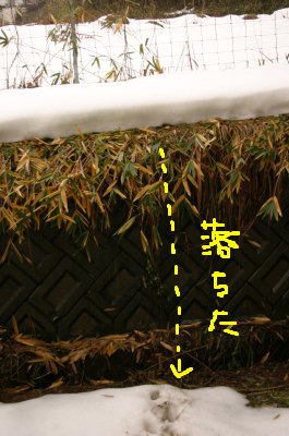 | 1月13日(金) 朝のお散歩でとりあえず形のあるうん@がお出まし。やれやれ。でも、もう少しかなぁ〜。今日は気温も高く、雪が溶け始めてきた。屋根の雪が車の上に落ちてこないか心配だわ。夕方のお散歩のうん@も朝と同じ感じ。もう1回くらいご飯を抜いた方がすっきり治ったのかもなぁ・・・。でも、なんかかわいそうでご飯って抜けないのよね。 |