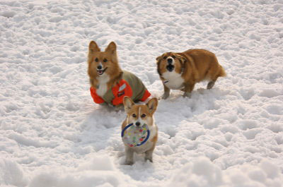| 2月11日(土) 今や毎年恒例となったお友達との雪遊び。本日、決行となりました〜。今年は雪が多いので、いつでも出来るわ♪と余裕でいたら、もう2月も10日を過ぎてしまったのよね。ご一緒したのは、QU家とミニー家。一緒の雪遊び&鍋ももう3度目だし、何度も遊んでるので、綿密に相談しなくてもすぐ決まる〜♪ やはり、いつもより雪が多かったので、人間はズボズボ雪に沈むのだけど、わんこはある程度は大丈夫。みんな思いっきり走って楽しそうでした。楽しい時間はあっという間に過ぎるのよね〜。片づけが終わる頃には雨がポツポツ。解散場所まで移動した頃には、雨も結構降ってきてしまったけど、何事もなく楽しく遊べて良かった〜。QU家、ミニー家の皆さま、今日もありがとうございました。また遊んで下さいね〜。 |