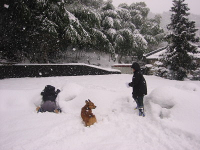 | 2月12日(日) 起きて見ると、天気予報通り雪〜でした。アトムは昨日の疲れもないようで。(笑) 午前中はお隣のK君&いとこ。午後からは駐車場の持ち主のお寺のA君&友達・・・と一緒に遊んでもらいました。お友達は、初めてだったので最初は恐る恐るだったけど、すぐに慣れてきて、持っていたフリスビーを投げて、アトムがキャッチしたり、持って帰ると大喜び。アトム。またお友達が出来たね〜。子供の頃にわんこ(動物)と触れ合うのって、いい事なんじゃないかなぁ〜と思う。 昨日の写真をUPしました。良かったらみてね。ここ。 |