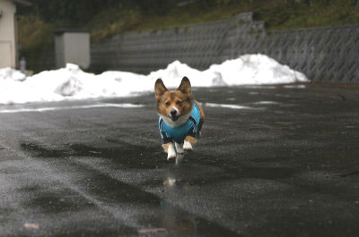 | 2月15日(水) 今日はお休み。だけど、お昼にちょっと仕事らしい。10時半くらいに出かけて、予定より少し早く帰ってきた。久々にパスタが食べたかったので、いつものお店に行くと、水木はパスタバイキングに変わっていた。最近、バイキングは得意じゃないのに気がついた我が家。あまりお得感がない。サッサと済ませて河川敷へ〜。早くしないと雨が降りそうだから遊べなくなっちゃうと困る。河川敷はべちゃべちゃだろうと思って服を着せて行ったら、なんだか暑そうなアトム。結構、ハァハァしてすぐバテる。もちろん服着たまま川ポチャもしてました。(^_^;) 帰りに国道で温度計を見ると11度。この温度で暑がるってどうよ。最近、雪遊びばっかりしてるからなぁ〜。夕方には雨も結構降ってきてたけど、与布土温泉に行っていつものお散歩。汚れるからここも服を着せて行った。散歩の後車に乗せる時に、服を脱がせる為にスナップをはずそうとして、服と一緒に毛も引っ張ったらしく、後に飛びのき「痛いっ。何すんねん」って顔で見上げられた。こんな事をするから服着るのを嫌いになるのかしら〜。(笑) 温泉から帰る頃には本降り、明日の朝は雨の中のお散歩だー。(>_<) |