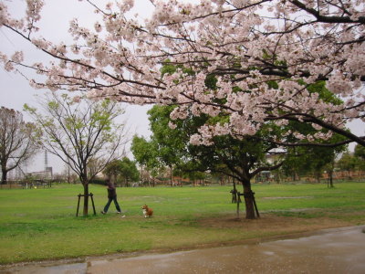 今日も朝から雨〜。(>_<) お昼は、傘をささなくてもいいくらいの雨だったので、河川敷へGO〜しました。明日もまだ雨降りそうだけど、風が吹かなかったらもう少し桜が楽しめるかなぁ・・・。だったらいいのにな〜。 |