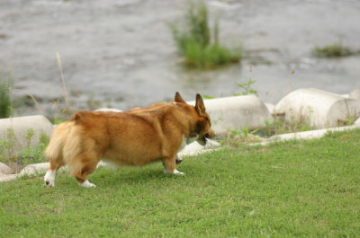 今日も雨は降ったというほど降らず。あれ?雨?って思ったらすぐに止んだり。今日は河川敷へ。お昼寝の後、またまたアトムが足痛〜いって。油断をすると、すぐに肉球の間が赤くなってたりする。頑張って拭いてるんだけどなぁ・・・。やっぱりこの時期は、ほとんど毎日のように濡れるのは皮膚に良くないんだろうなぁ。薬を塗ってしばらくするとすぐに復活するんだけど、明日は河川敷はお休みだな。 |
