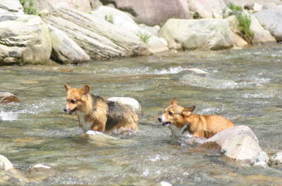 今日はミニーママに誘って貰って、アトムと一緒に川遊びに行って来ました。ババとお昼を食べて、その後お留守番して貰って行ける時間にして貰ったのに、結局ババはお休み。(来ないなら来ないで連絡してくれ〜!(怒)) お久しぶりのミニーママ&ミニーちゃん。元気そうで良かった♪ ミニーちゃんは水遊び大好きで、ほとんど川に入りっぱなし。アトムと言えば、飽きてきたら辺りをウロウロ・・・。(^_^;) 短い時間だったけど、久々に遊べて楽しかったです。ありがと。アトムは、あんまり泳いだりしていなかったはずなのに、帰ったら爆睡でした。アトムにとっても久々にお友達と遊べて、良かったみたい〜。また一緒に遊んでね。 |