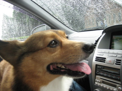 天気予報に反して、午前中は太陽の光が射して暑くなった。ここんとこ涼しかったけど、今日は暑いので最近のパターンでいこう・・・とアトムはお留守番でお買い物へ。2時を過ぎていつ行こうかなぁ・・・と思っていたら、雲行きが怪しくなって雨がパラパラっと。でもすぐに止んだのでしばらくしてからアトムを車に乗せて中央公園へ。ところが駐車場に着いた頃に雨がポツポツ始まった。あれれ。さっき降ったんじゃないの? 少し車で待機していたら止むかと思ったけど、雨足は変わらないし、アトムはお散歩行く気マンマンなので、少しくらい濡れてもいいかとお散歩を開始した。結局、雨は止むどころか時折り強く。(>_<) さすがのアトムも走り出そうとするくらい・・・。(^_^;) そんな中でも雨宿りしながら、なんとかうん@を済ませお散歩終了。私は傘をさしていたけど、アトムは結構濡れちゃった〜。車に戻り家へ。トンネルを抜けると、あれれ地面が濡れてない。 家に着いても全く濡れてない。(>_<) 車で5分かからない場所なのに、どうやら雨に濡れに行った模様・・・。実は私かアトムが雨女?雨男?(苦笑) |