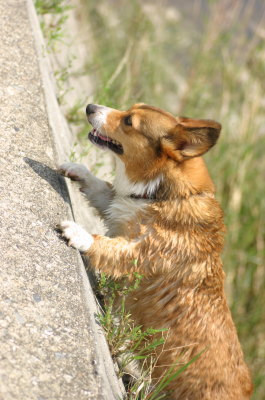 | 8月7日(月) 今日は少し風があったので、河川敷はマシでした。アトムの肉球は結構厚くなってるのか? アスファルトやコンクリートの上でも結構平気そうに立ってたりする。こっちは、少しでも日陰の部分や草の上を歩かせようとしているのに、ほっておくと、熱いだろうそういった部分に立ってたりする。テンション上がってて気づいてないの? 単なるおバカ?(爆) |