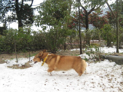 いつもより1時間半程早く出勤すると言う旦那。雪が積もったら更に早く行かないといけない・・・ってさ。昨日の夜は雪が降っていなかったし、降りそうにもなかったのだけど、それでもいつ降りだすかわからない・・・。結局、気になって何度も目が覚めた。朝起きて見ると積雪はなし。ところが、アトムのお散歩に行こうと外に出ると降り始めてるし〜。で、ちょことだけ積もった。そうこうしていると雷が鳴り始めて、アトムの落ち着きがなくなってしまった。ホントに雷が恐くなってしまったのかブルブル震えている。おまけに抱っこ〜とやってくる。(^_^;) でも、ど〜してあげる事も出来ないのだよ・・・。あまりにアトムのテンションが低いので、ちょっと落ち着いてきたところで雪かきを兼ねて外へ。それに気づいたK君が出てきてアトムと遊んでくれた。上機嫌になったようだ。もしかして、雪遊びが早くしたくてブルブル震えてたりして。(爆) 年末にりんごをたくさん貰ったので、そのりんごでアトムのクッキーと人間用のカントリーケーキを焼いたりして過ごす。晩御飯は七草粥。旦那が朝ご飯を食べないので、仕方なく夜に。でも、一緒にお餅まで食べたてたら、胃を休めることにはならないよね。(^_^;) |