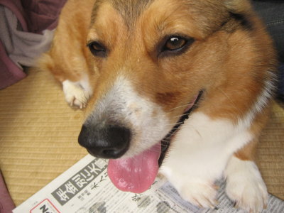 #涎ボトボト。新聞で受ける・・・。